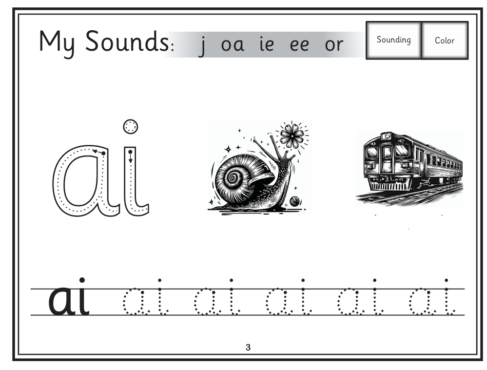 Learning the letter sounds, letter formation, vocabulary and sounding